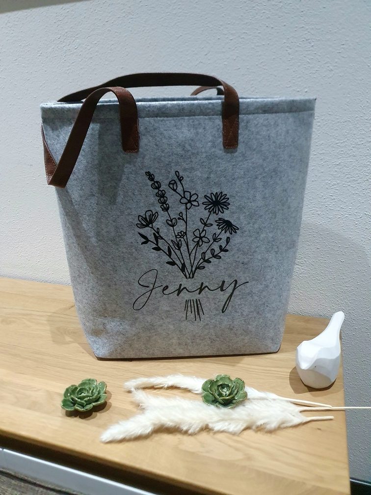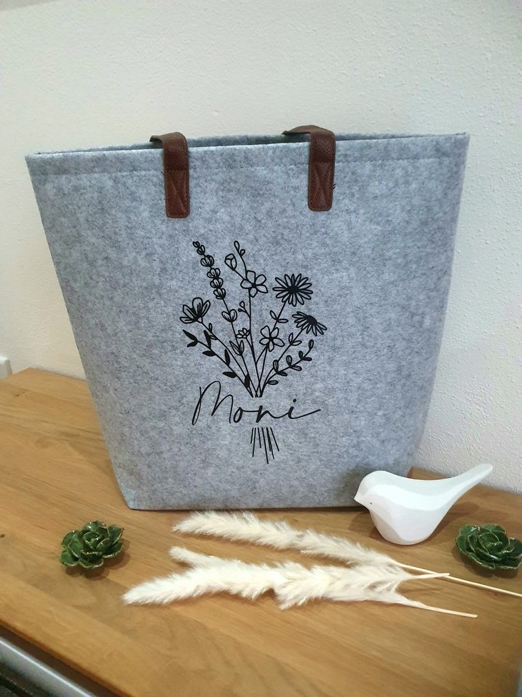 Filztasche Blumenstrauß mit Namen personalisierbar